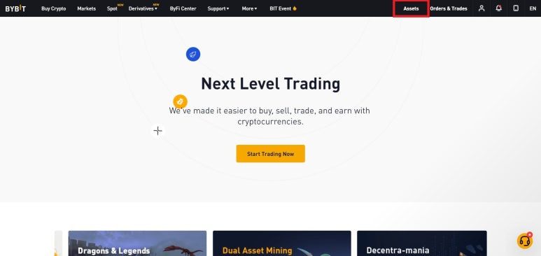 - 바이비트에 로그인 후 오른쪽 상단 Assets 클릭