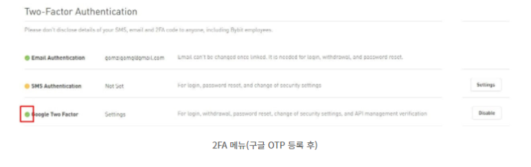 - Google Two Factor 오른쪽에 있는 Settings 버튼을 클릭