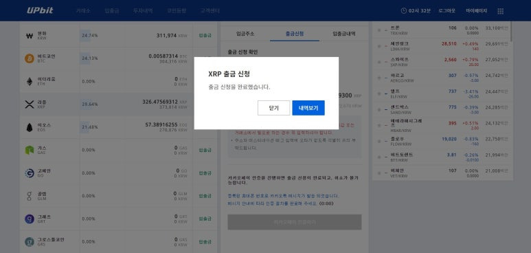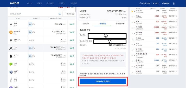 - 업비트에서 리플을 선택 후 출금 신청