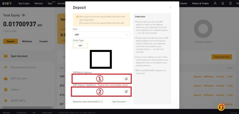 - 리플 출금 시 1리플이 수수료로 빠지고 나머지가 바이비트로 전송됩니다.