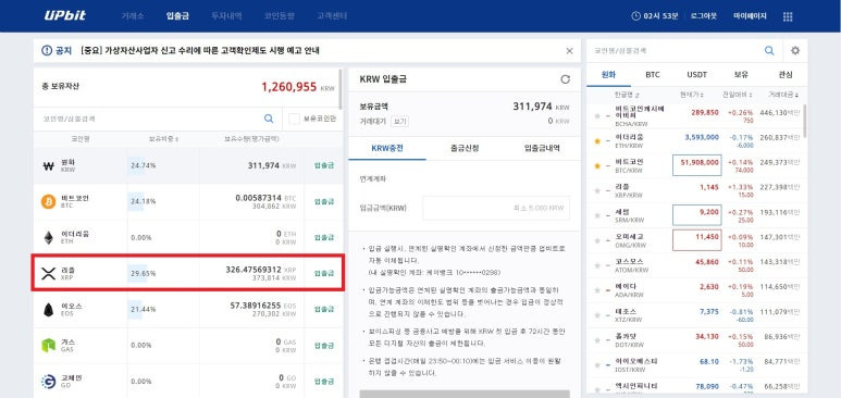 - 입금할 코인(저는 리플 XRP)을 선택