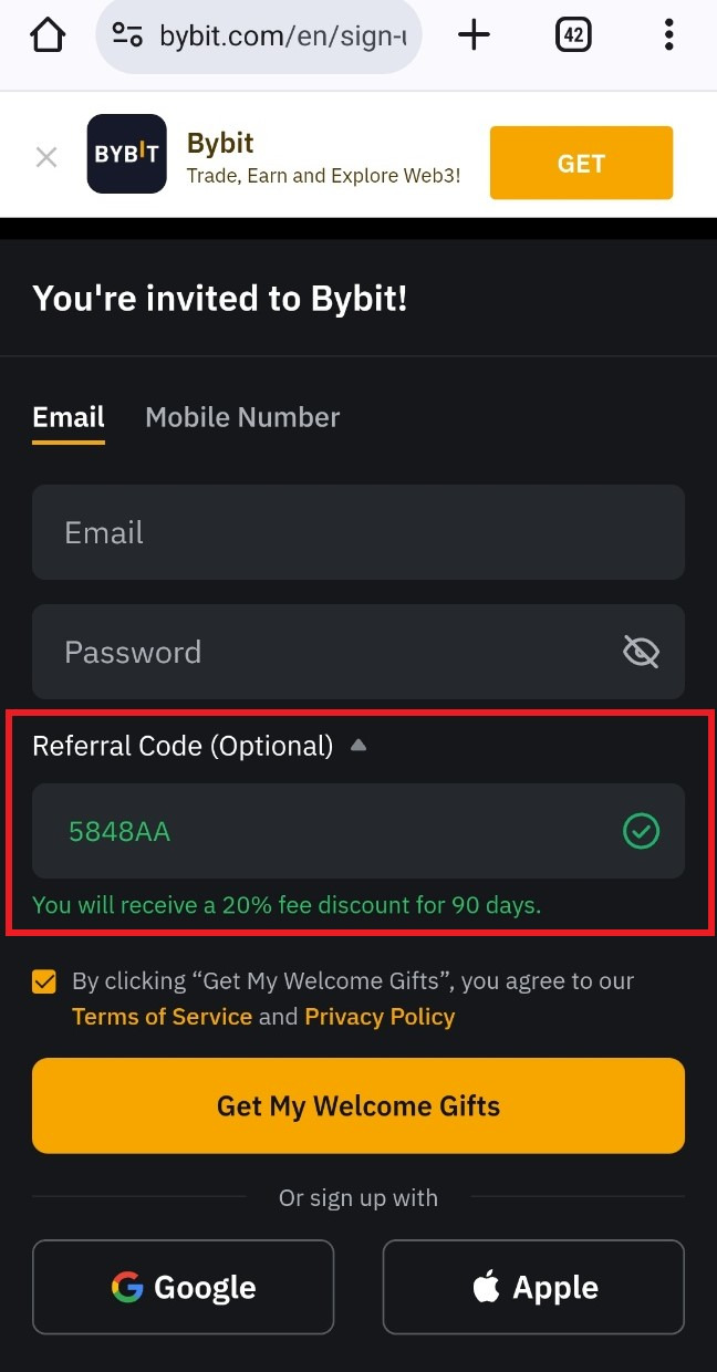 ※ 가입 시 Referral Code(추천 코드) 5848AA가 입력되어 있어야 수수료 할인 혜택을 받을 수 있습니다.